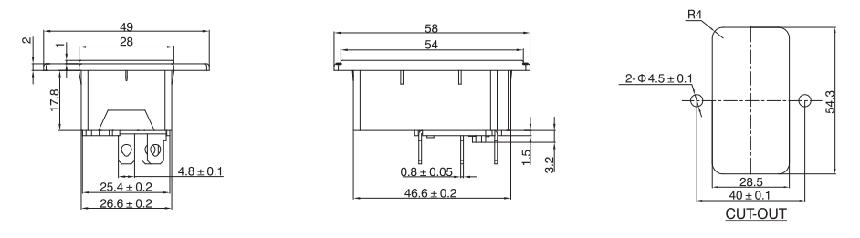 治具插座S-03系列,單插、二合一、三合一保險插座等多種規格,大電流10A ,15A,產品通過UL VDE CCC CB等認證,常見于家用電器,音響功放機等