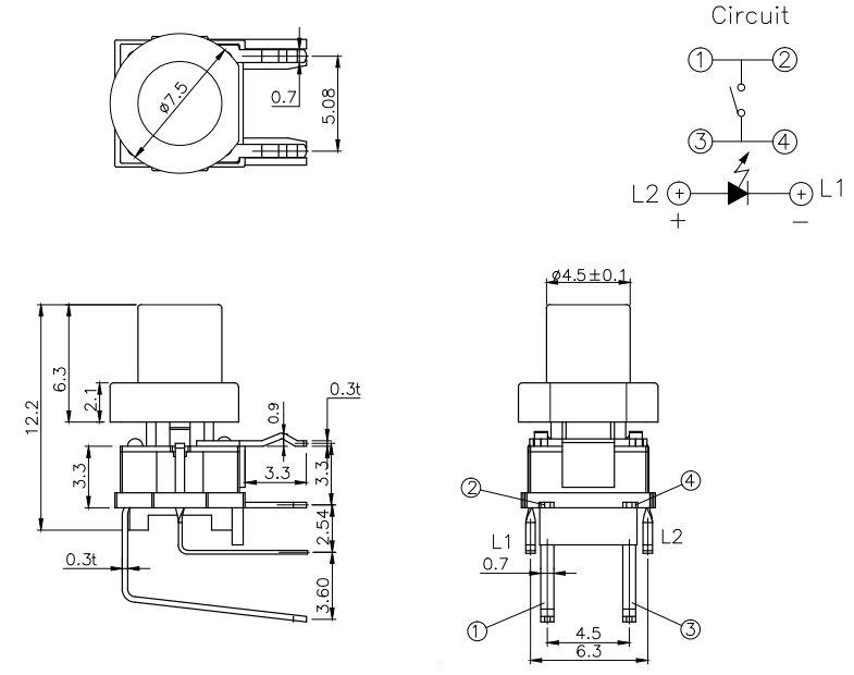 帶燈輕觸開關(guān)TS3-6AR-1C-3B